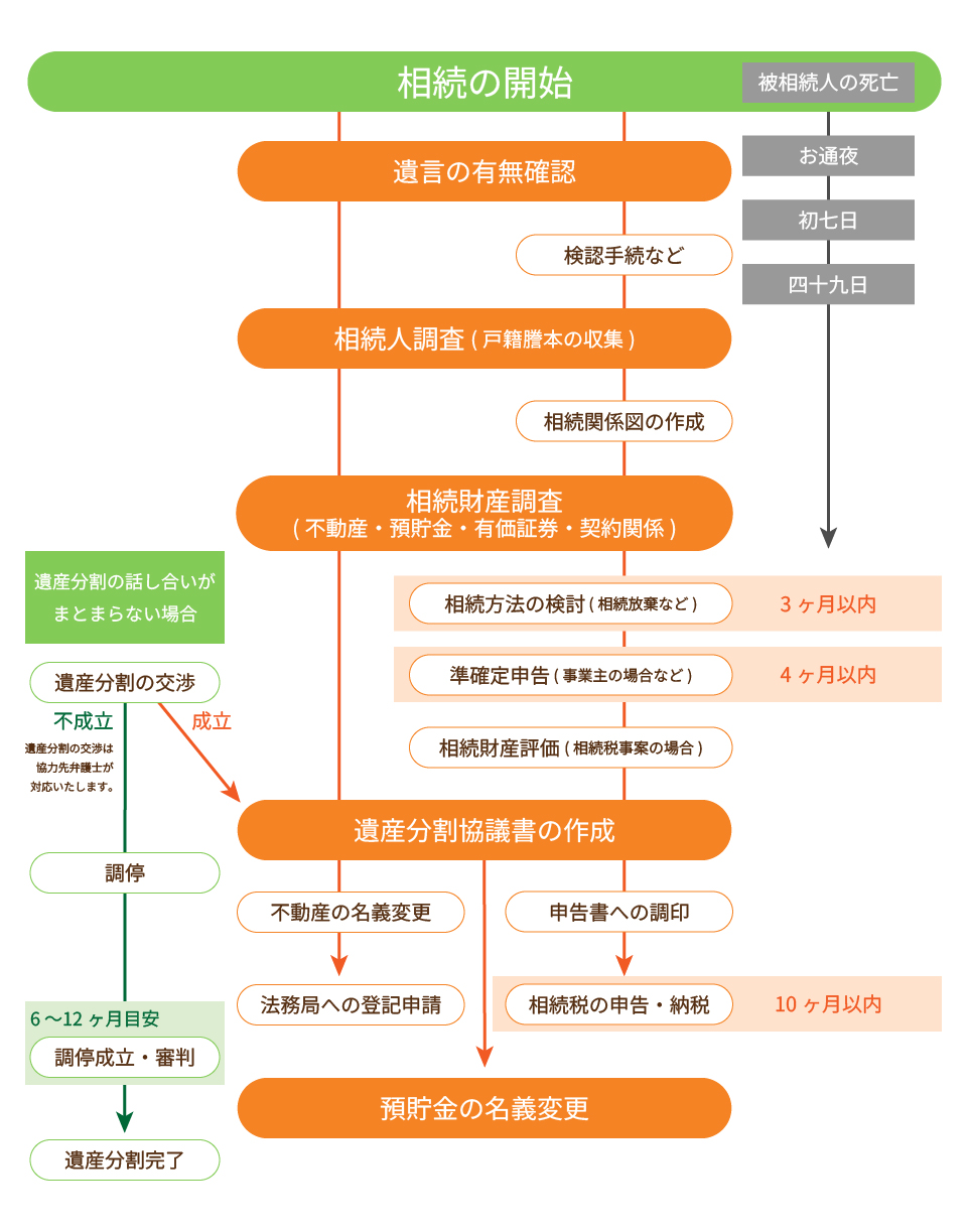 こちらでは、 一般的な相続 の流れをわかりやすくまとめています。